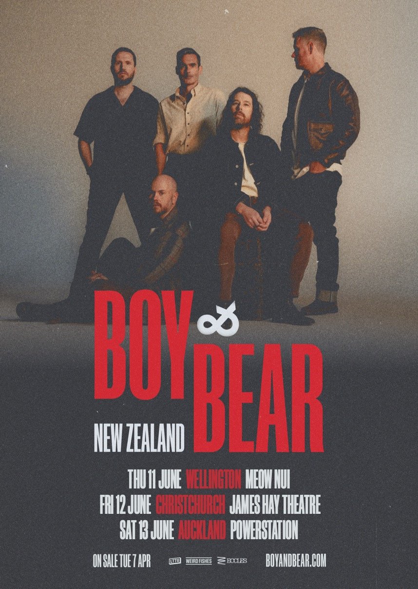 Australian indie-folk favourites Boy & Bear announce their return to Aotearoa, playing three consecutive shows in Wellington, Christchurch and Auckland this June. Tickets go on sale Tuesday 7 April at midday.